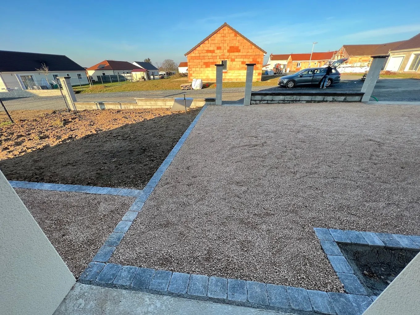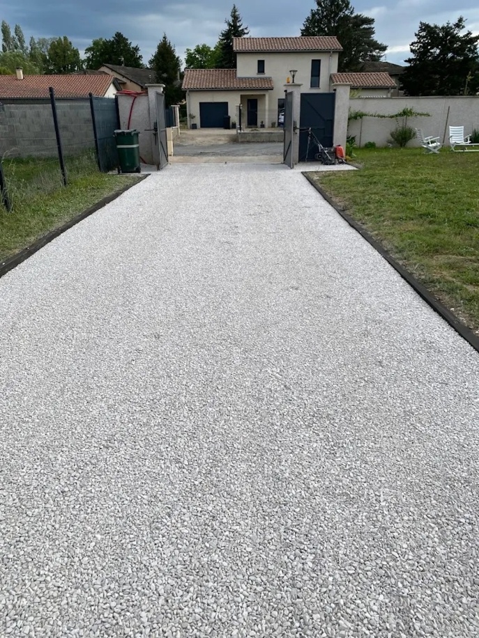 Aménagement extérieur avec gravillons de différentes teintes.